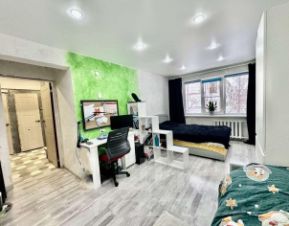Общая площадь 42,8 кв.м: изолированная комната 17,6 кв.м + кухня-гостиная 16,5 кв.м.