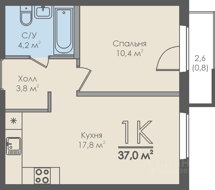 1-комнатная квартира.