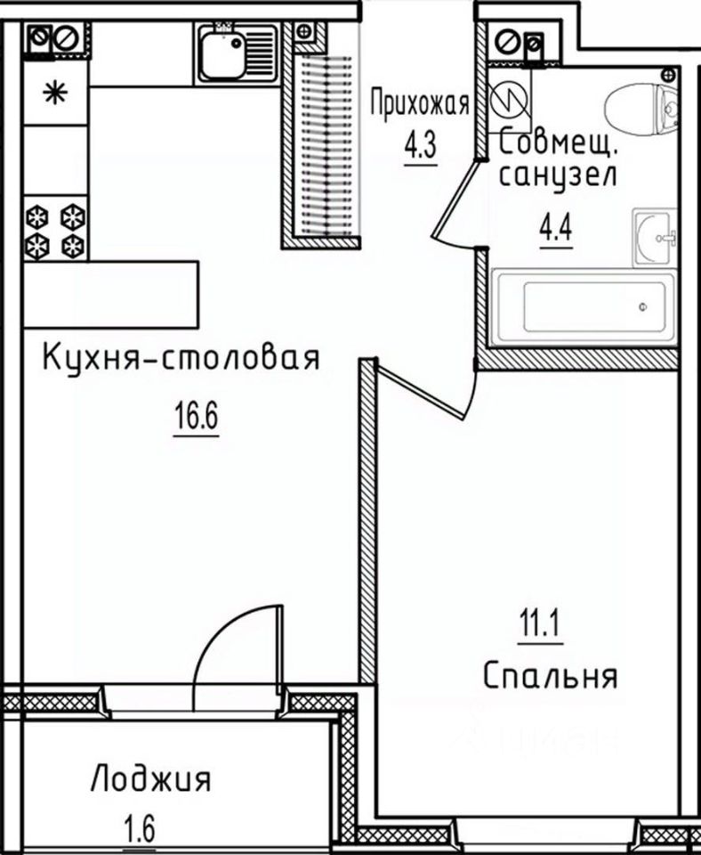 1-комн. от 33,8 м²
