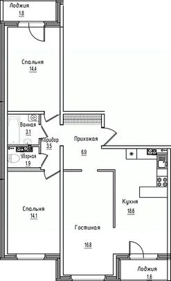 3-комн. квартира, 82,7 м²