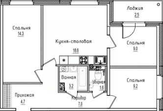 3-комн. квартира, 70,1 м²