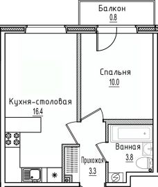 1-комн. квартира, 34,3 м²