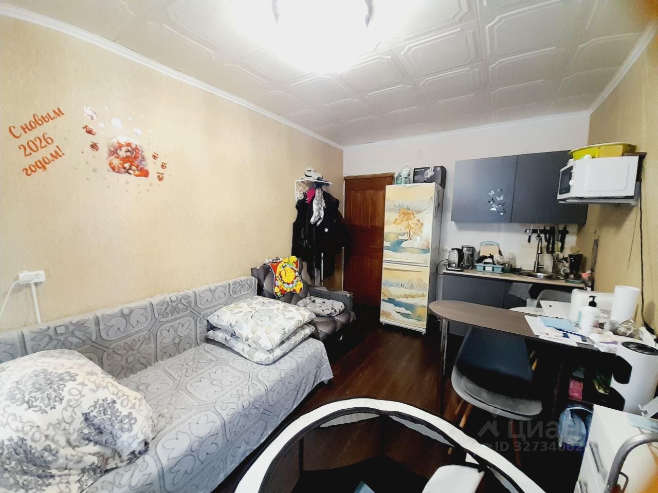 состоянии: заезжайте и живите без ремонта;В комнате установлена встроенная кухня, проведена вода.