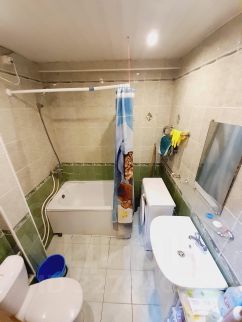 Соседка по второй комнате порядочная женщина. Тихая и спокойная.Санузел ч отличном состоянии, все в кафеле ,установлена ванна.