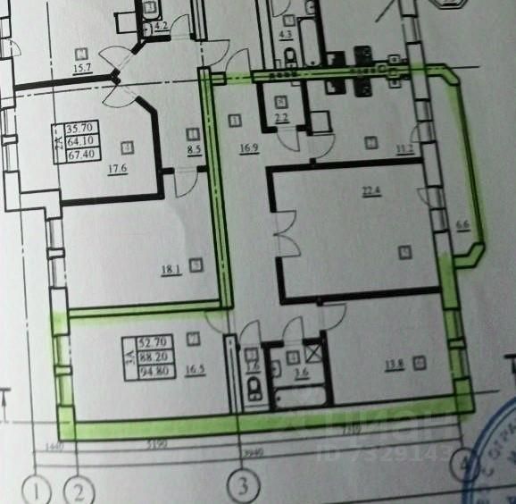Арт. 92176345. Продам уютную 3 комнатную квартиру общей площадью 88,5 кв.м на 1/3 этаже в кирпичном доме 2018 года постройки ЖК Премьера, по адресу: Великий Новгород, ул. Связи д.21.