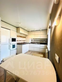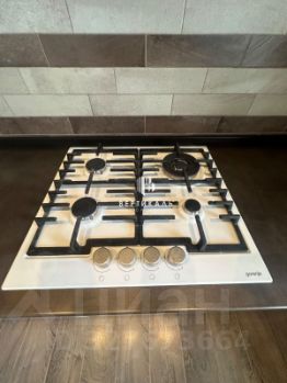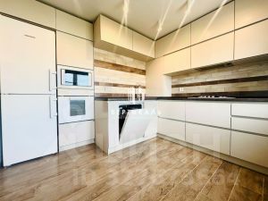 Просторная кухня-гостиная укомплектована новой кухней на заказ со встроенной техникой (варочная поверхность, духовой шкаф, посудомоечная машина, вытяжка, холодильник).