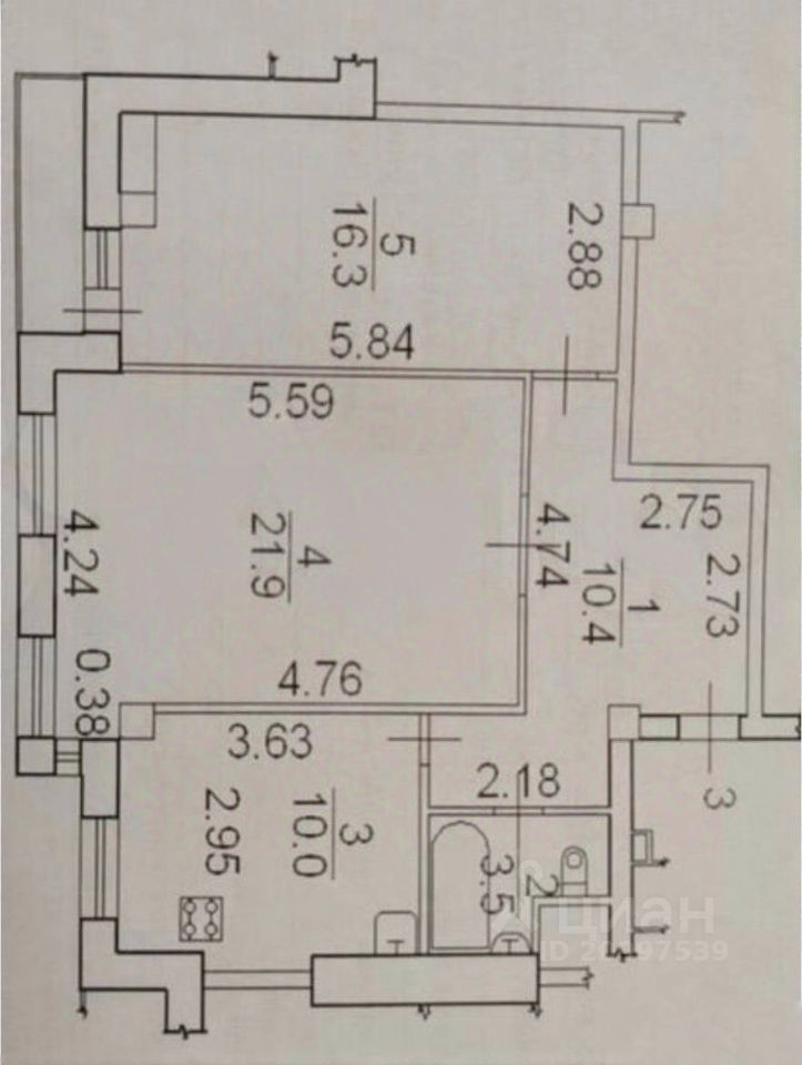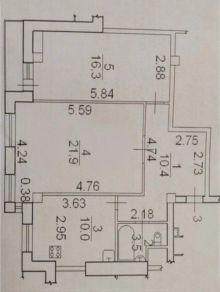 Площадь изолированных комнат: 21,9 кв.м. и 16,3 кв.м.