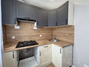 Встроенная кухня с газовой варочной панелью и вытяжкой.
