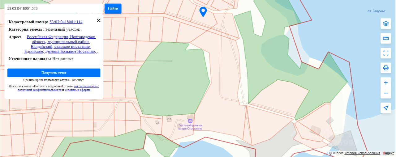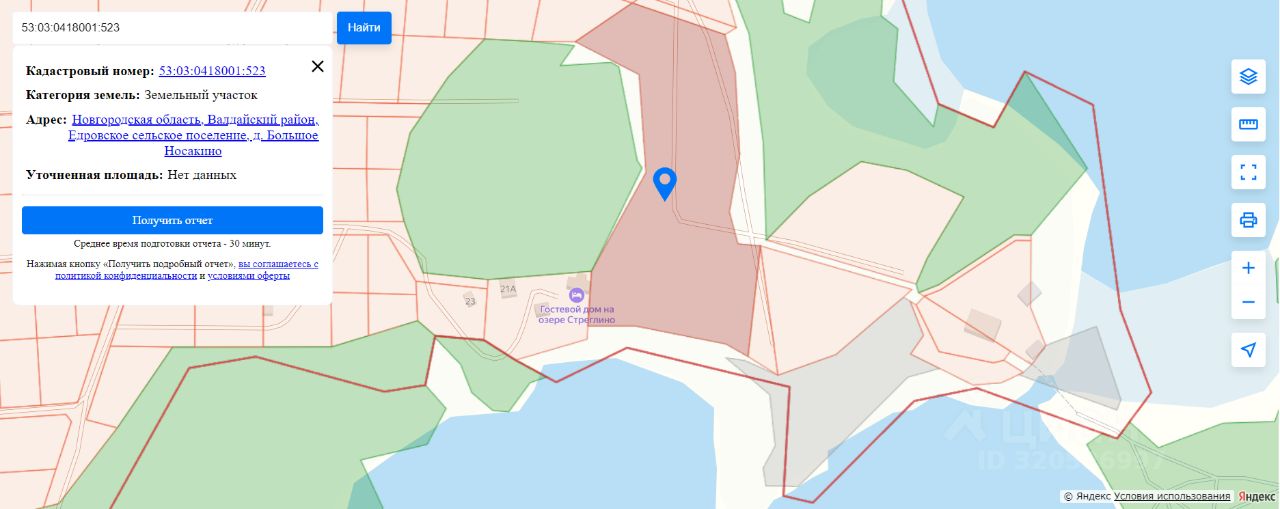 Большой участок с выходом к воде ( состоит по документам из четырёх участков), 267 соток, в д. Большое Носакино, Валдайского района Новгородской области. Категория: Земли населённых пунктов. Разрешённый вид использования: Отдельно стоящие односемейные или двухсемейные жилые дома усадебного типа.Расположение: первая линия от озера Стреглино. Живописная природа. Лес.До города Валдай с известным озером Валдай 20 км, до с. Едрово 3 км, до Великого Новгорода 171 км, до Санкт-Петербурга 340 км. В радиусе 5-6 км есть базы отдыха, мини-фермы, конюшни. Всё для вашего отдыха: грибы, ягоды, рыбалка, охота.