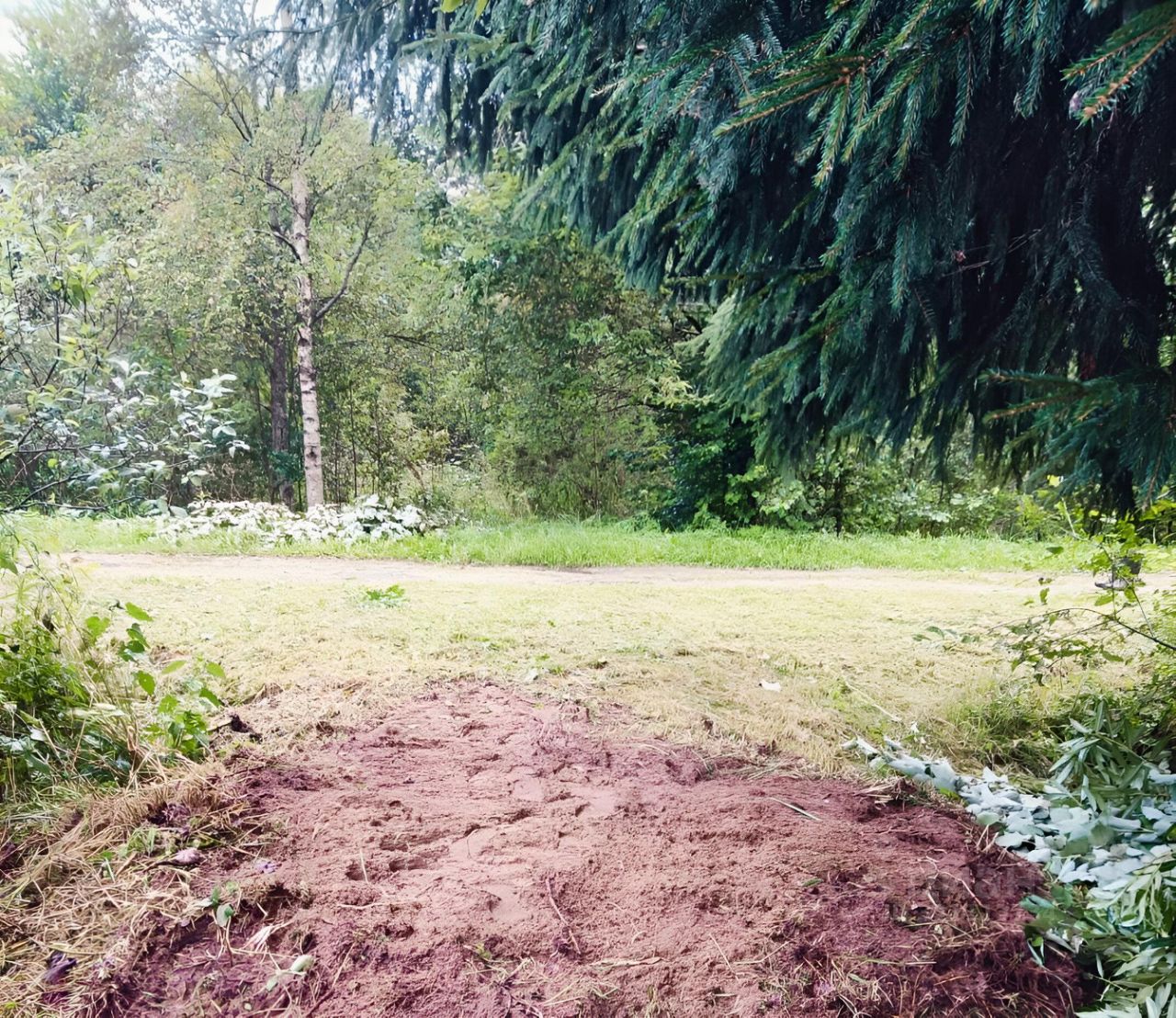 На территории вокруг дома возможно обустроить зону отдыха или сад.
