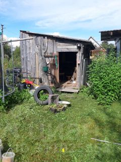 Электроэнергия мощностью 5 кВт, готовый фундамент размером 6х6 метров, наличие сарая и фруктовых деревьев (яблоня, слива, малина, крыжовник, лаванда).