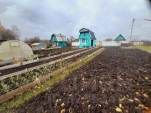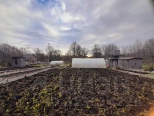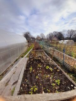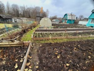 Земля плодородная, навозная.Грядки огорожены.В зиму посажено много чеснока.
