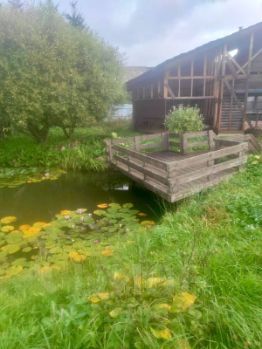Гараж, выход к которому из дома, большая баня, но она не зарегистрирована. На участке есть теплица, пруд с декоративными растениями, дом огорожен забором.