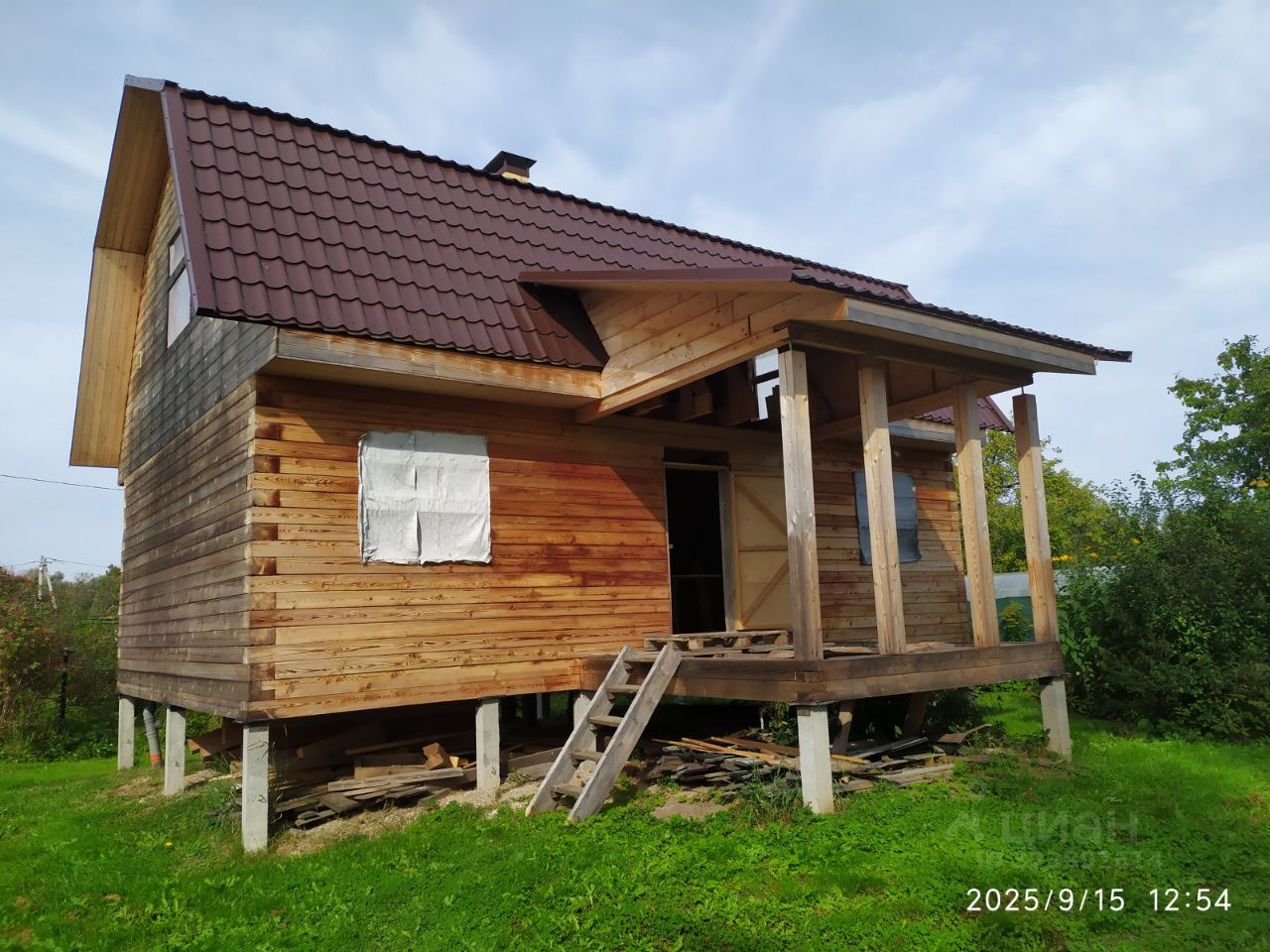 Размеры дома: 6*9 м., плюс прихожая 3*3 м. К дому просятся террасы по бокам. Деревянные окна со стеклопакетами в наличии и ждут установки. Два хозблока, 6*2,4 и 6*3 под любые нужды. Видеонаблюдение.