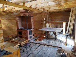 Септик из железобетонных колец трехсекционный: 3 + 3 + 2 кольца. Колодец на 5 колец. Сделана подводка к дому для колодца и септика. Электричество подведено, трехфазное, свой собственный лицевой счет и личный столб на участке, новый счетчик. Кирпичная варочно-отопительная печь с духовкой, установлена на пяти Ж/Б сваях. Газовая труба, метрах в 60ти. Дом стоит на железобетонных сваях, высота цоколя 80-90 см. После завершения строительства вся внешняя поверхность дома обрабатывалась профессиональными антисептическими и огнебиозащитными составами (масловоск Интерьер, Торец, огнебиозащитная пропитка Кайсар Профи). Процесс усадки прошел хорошо и равномерно.
