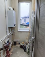 В доме установлено газовое оборудование в виде двухконтурного газового котла, множеством розеток, новая электропроводка, проведены розетки и освещение на террасу. Водоснабжение - скважина. Канализация: биостанция с автоматическим выбросом технической воды. Электричество 15 киловатт.