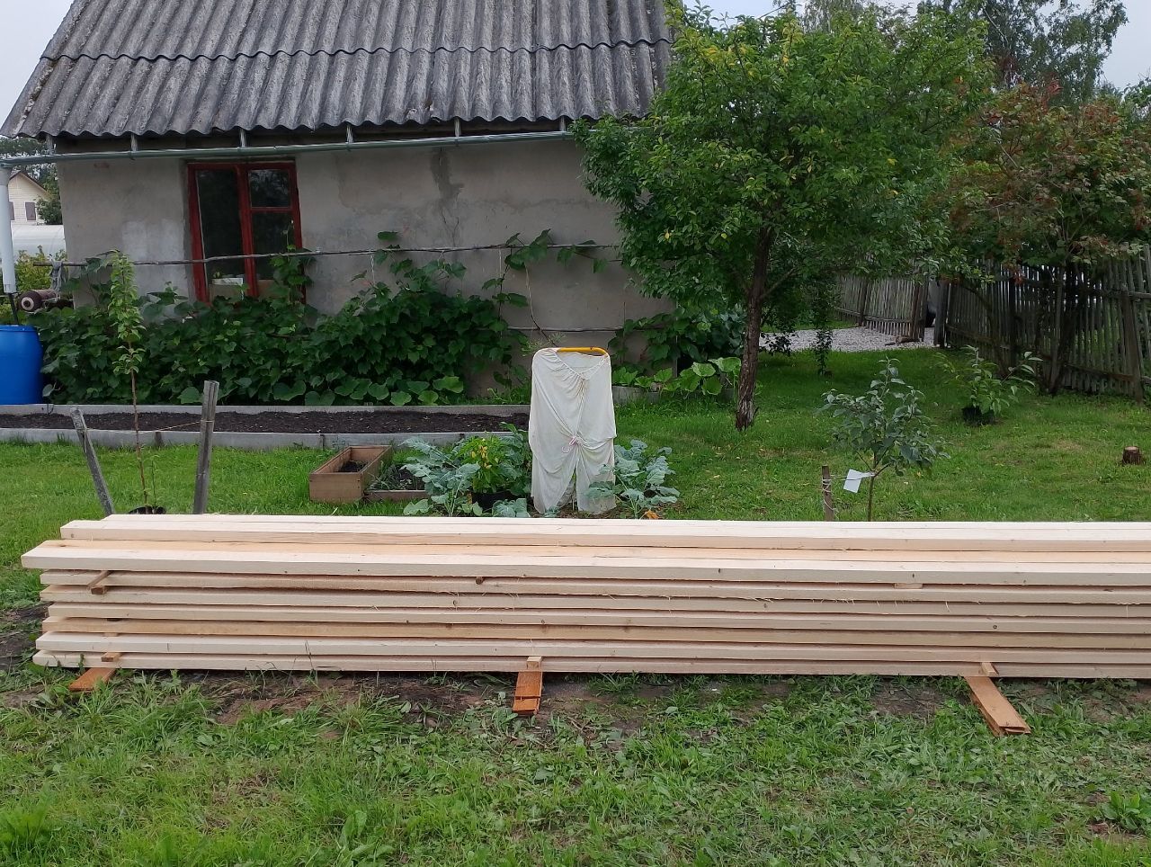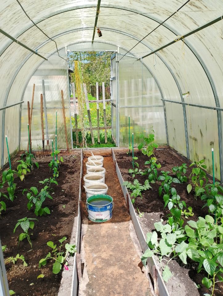 Два смежных участка 10,5 соток. На одном кирпичный домик, на другом каркасный с мансардой. На участке выкопан пруд и запущены караси. Есть ёмкость 3 куба под воду, закопан водовод до реки, 2 теплицы,, летний душ. На одном участке туалет на улице, на другом в доме. Яблони, сливы, малина, смородина, крыжовник, виноград - всё в наличии. Живу в деревянном доме, кирпичный ремонтирую. Поменял двери, поставил пластиковые окна, постелил серьёзный пол, обшил стены, провёл электричество в оба дома, но работы ещё много.