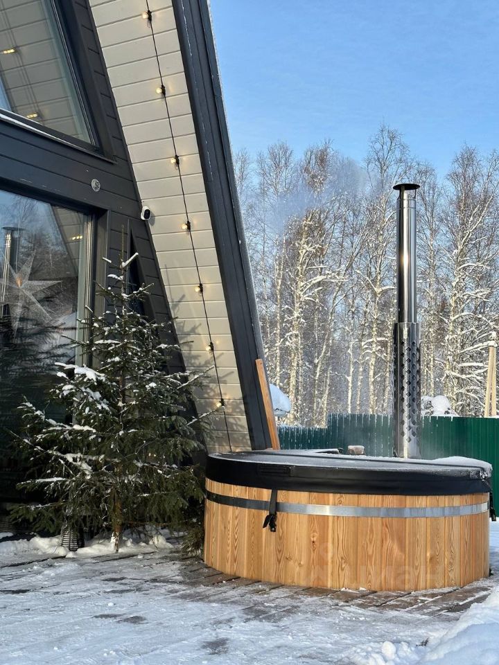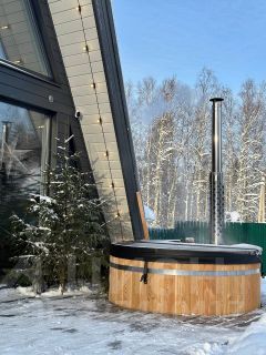На одной из террас, с видом на лес, установлена купель Фурако из лиственницы.