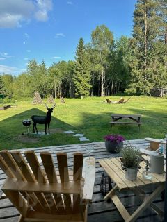 Участок ровный, ухоженный, несколько высоких грядок для зелени, и вид на лес, прекрасная мангальная зона и лобное место.