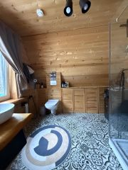 Дом 2х этажный, на первом этаже просторная кухня-столовая, спальня и сан узел, два выхода на террасы.