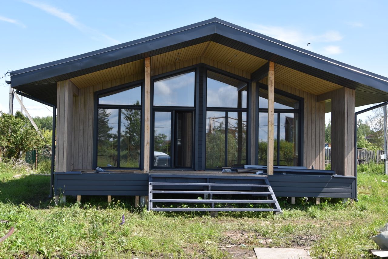 Фальцевая кровля 0,5 мм, высота потолков в доме 3,78 м. Индивидуальный дизайн экстерьера, используемый материал отделки фасада дома - металлический сайдинг Квадро брус 3D, 0.45 мм Print Elite (White Wood), производство Южная Корея. Двухкамерные стеклопакеты с тиснением и тонировкой Графит, входная дверь с терморазрывом. При строительстве произведены геологические работы на предмет исследования грунтов, получены необходимые разрешения, тип фундамента 4-х метровые железо-бетонные сваи в количестве 47 штук, идеальное расположение дома (с двух строн подъездная дорога к участку, рядом уже построенный дом), заезд на участок с основной дороги, дом подключен к электричеству, канализация - станция биологической очистки, водоснабжение - скважина. В настоящее время идёт отделка стен имитацией бруса. (Фото выложу после окончания обшивки стен). Различные формы приобретения. Подходит под семейную ипотеку.