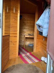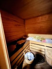 Отличная русская баня, есть душевая кабина, место для отдыха.