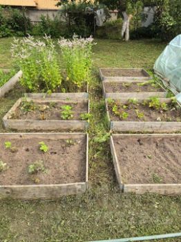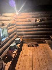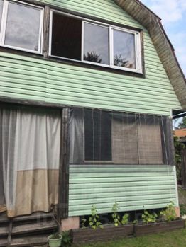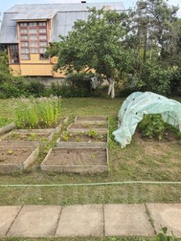Русская баня с верандой, мангальная зона, теплица, несколько грядок под овощи.