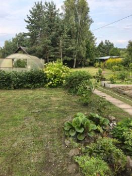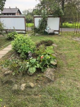 Участок ровный, обрабатывается, множество деревьев, кустарников, цветы, много елей, сосен. Очень зеленый, живописный. Участок огорожен. Хорошие соседи, многие проживают круглогодично.