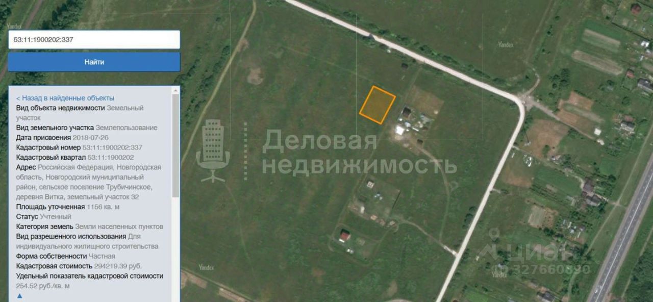 Кадастровый номер участка 53:11:1900202:337