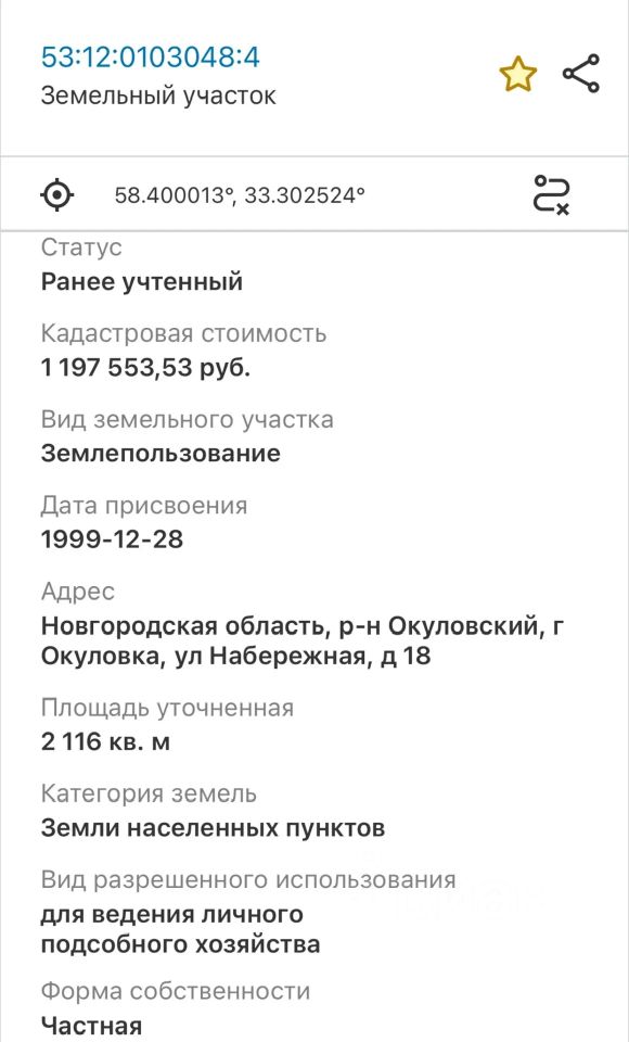 Kaдacтровый номeр 53:12:0103048:4