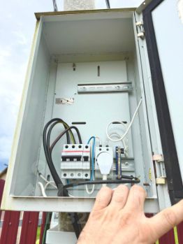 На участок подведено электричество, на опоре установлен прибор учёта электроэнергии и выведена розетка на 220 380 В., 3 фазы, 15 квт.