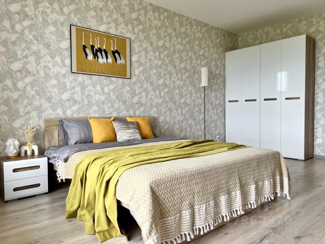 Просторная светлая 2-х комнатная квартира в новом доме очень уютно встретит своих гостей! Есть кухня со всем необходимым для приготовления еды, в спальне и коридоре просторные шкафы, есть двухспальная кровать и раскладной диван С балкона виден прекрасный закат! Зато с утра солнце с другой стороны и вы обязательно выспитесь!