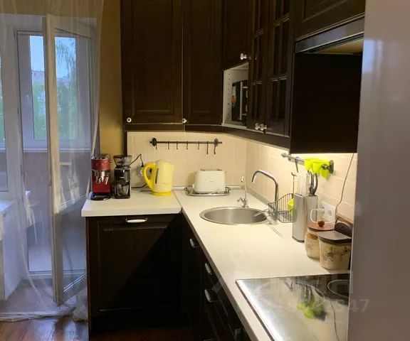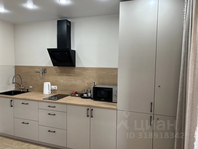 На кухне также есть необходимое: чайник, микроволновая печь и холодильник, индукционная плита.