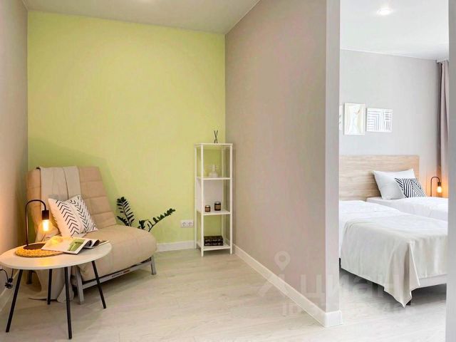 Квартира подходит для размещения до 4-х гостей. Квартира оснащена необходимым для проживания: двуспальная кровать 160 см на 200 см и диван 160 см на 200 см, шторы, ЖК телевизор, Wi-Fi.