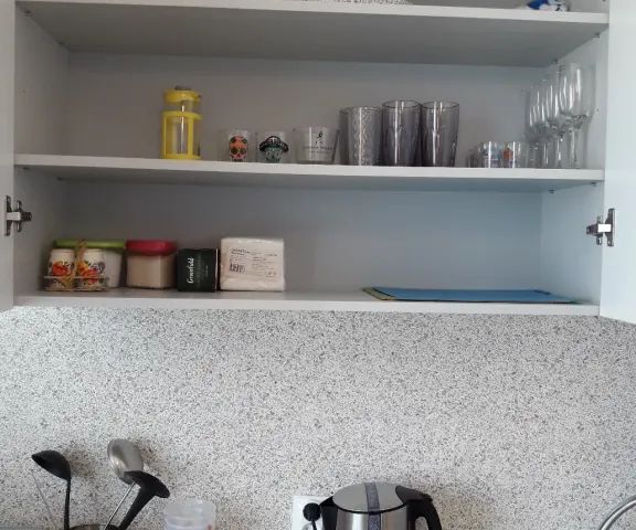 •полностью оборудованная кухня с посудой, чайником,плитой, микроволновой печью и холодильником.